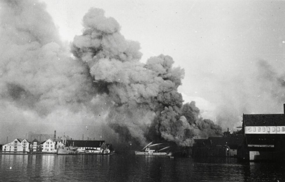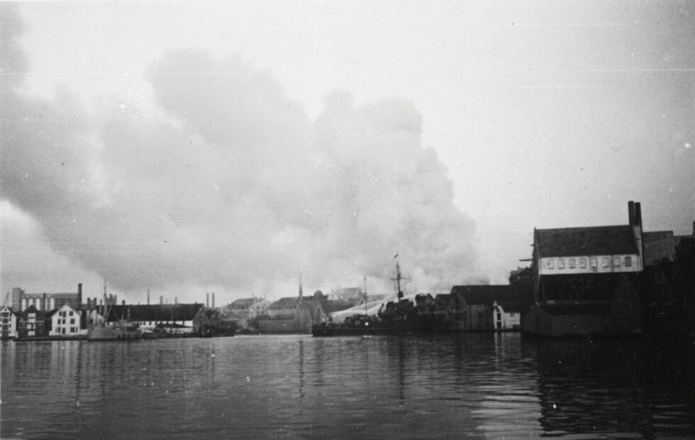 19. mai 1941 – Brann på Rosenberg. To av den tyske marines barakker var i brann. En kunne høre tyskernes brøl helt inn til Fiskepiren.